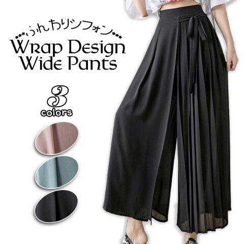 ガウチョパンツ ワイドパンツ プリーツ ロングパンツ ロング丈 フレアパンツ シフォンパンツ レディース ウエストゴム ゆったり フレア裾 無地 可愛い 新作